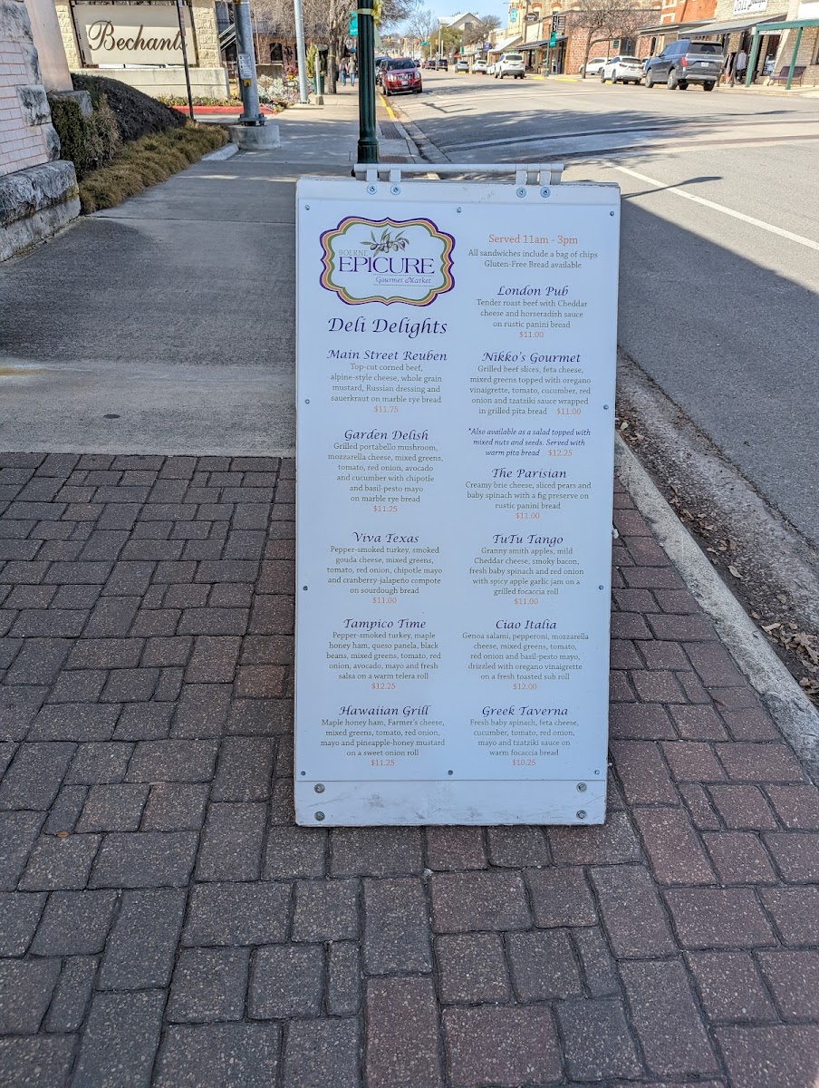 The menu at Boerne Epicure Gourmet Market offers a thoughtfully curated selection of casual bites and fresh deli favorites, perfect for a relaxed lunch or a simple yet satisfying snack. It blends a gourmet grocery vibe with approachable dining, making it easy to enjoy well-prepared sandwiches and small plates in a friendly, comfortable setting.